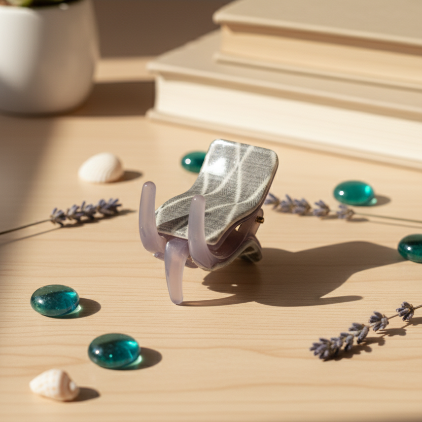 Lilac Acrylic Base Small Hair Clamp with Tartan Pattern