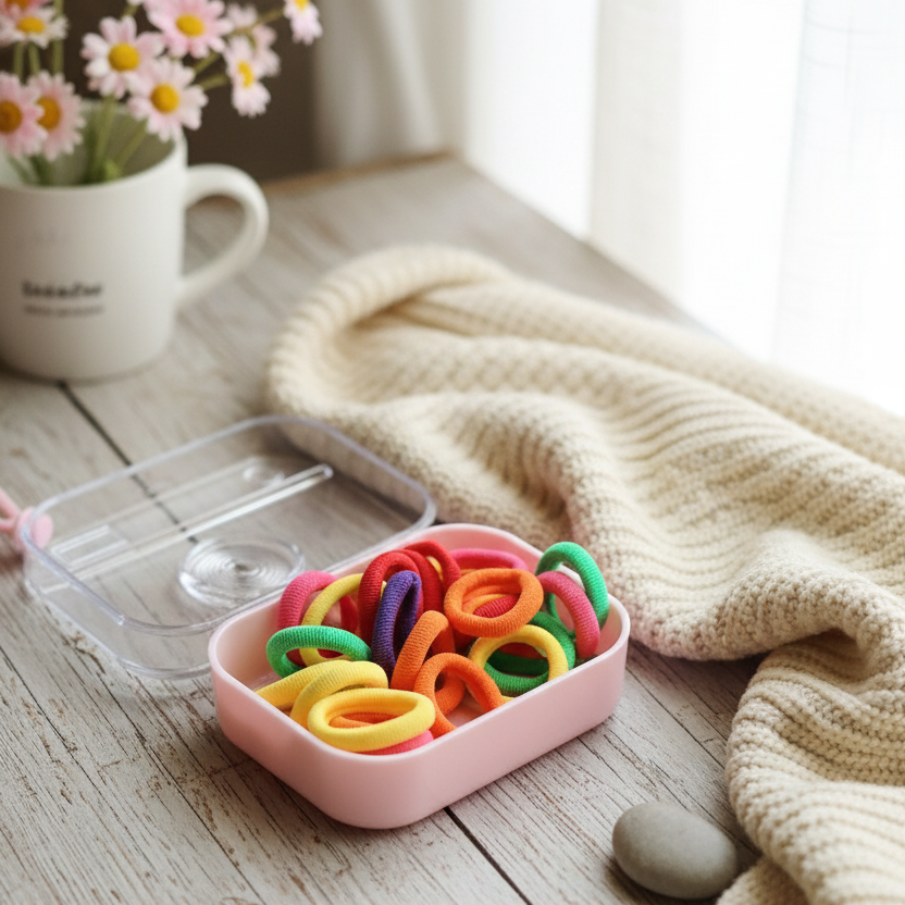 Keep your hair stylishly secure with this generous set of vibrant, high-quality elastic hair ties. Designed for comfort and durability, these bands are perfect for creating everyday ponytails, braids, buns, or pigtails.